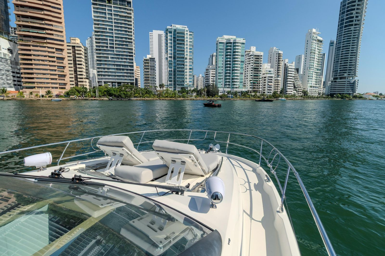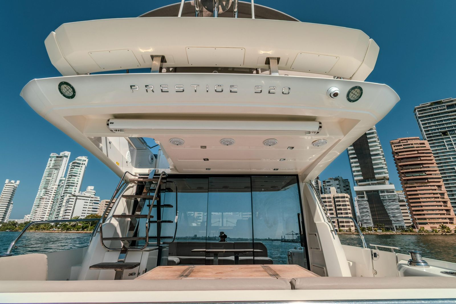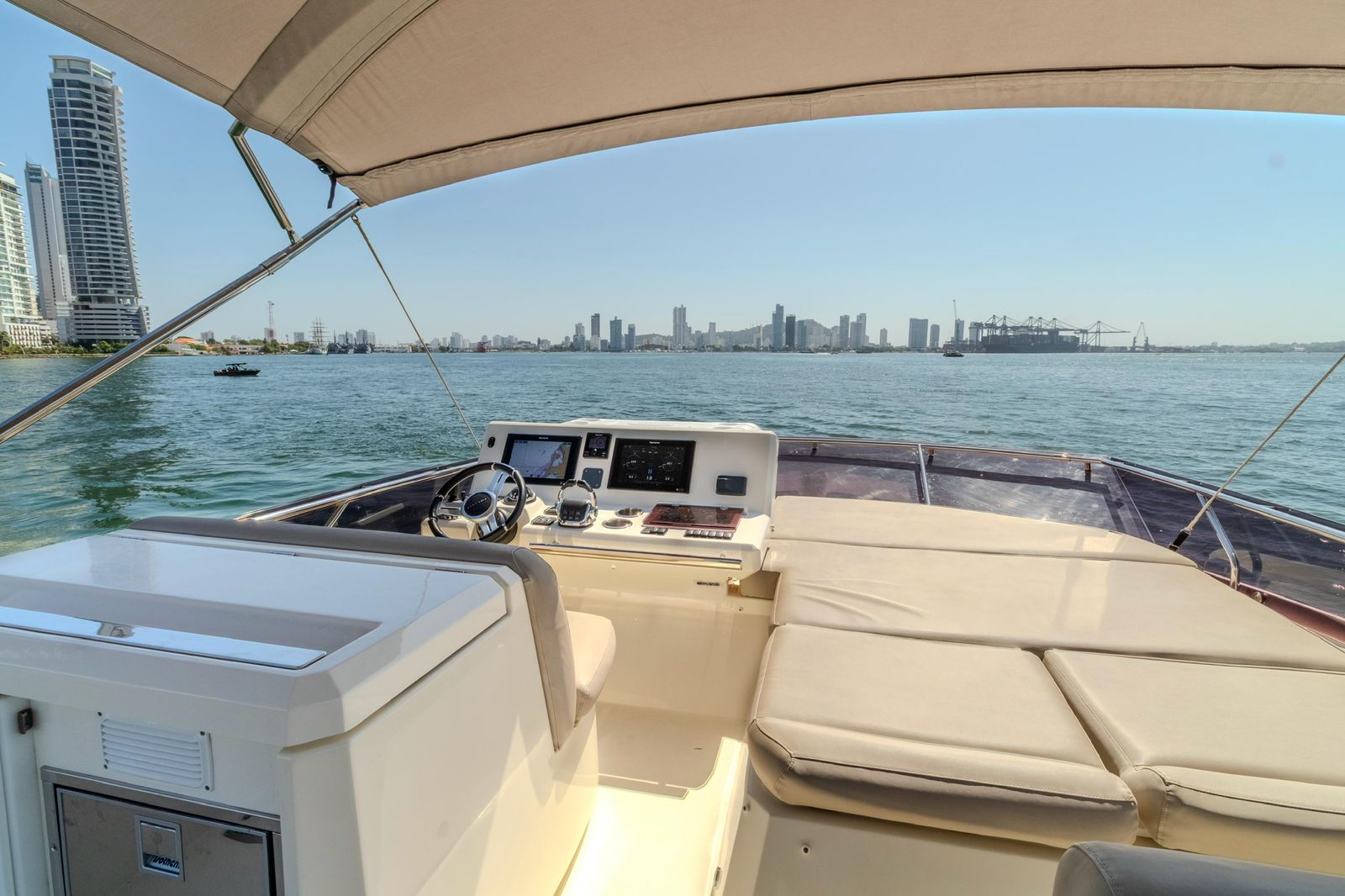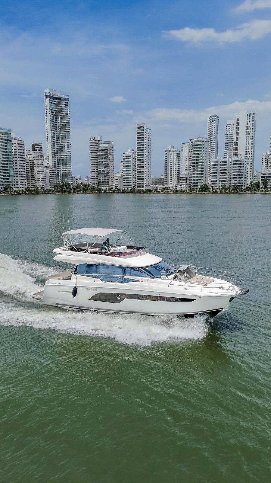 We set departure on a 520 Prestige F-Line Yacht Rental Cartagena for an unforgettable Island Tour. Step aboard, sip your welcome drink, and let our friendly crew create the perfect vibe. Then, as we cruise through the turquoise waters, get ready to explore Cartagena’s most beautiful islands— each with its own magic, hidden coves, and Caribbean charm.