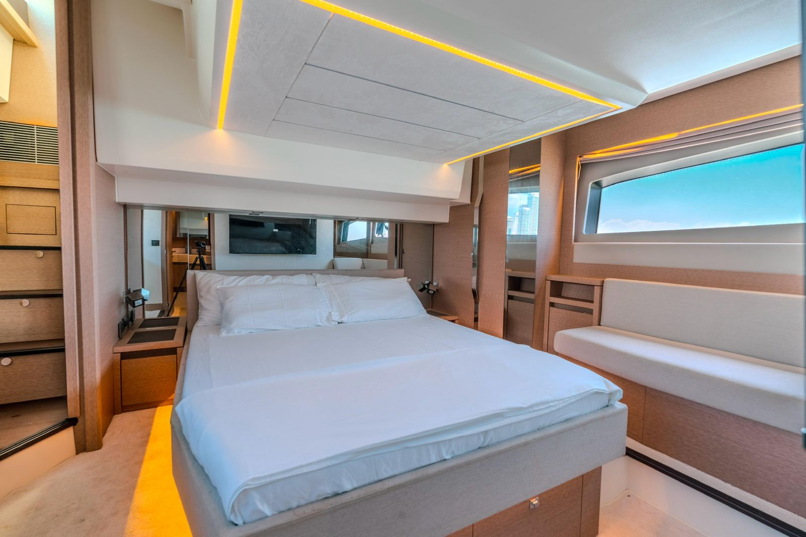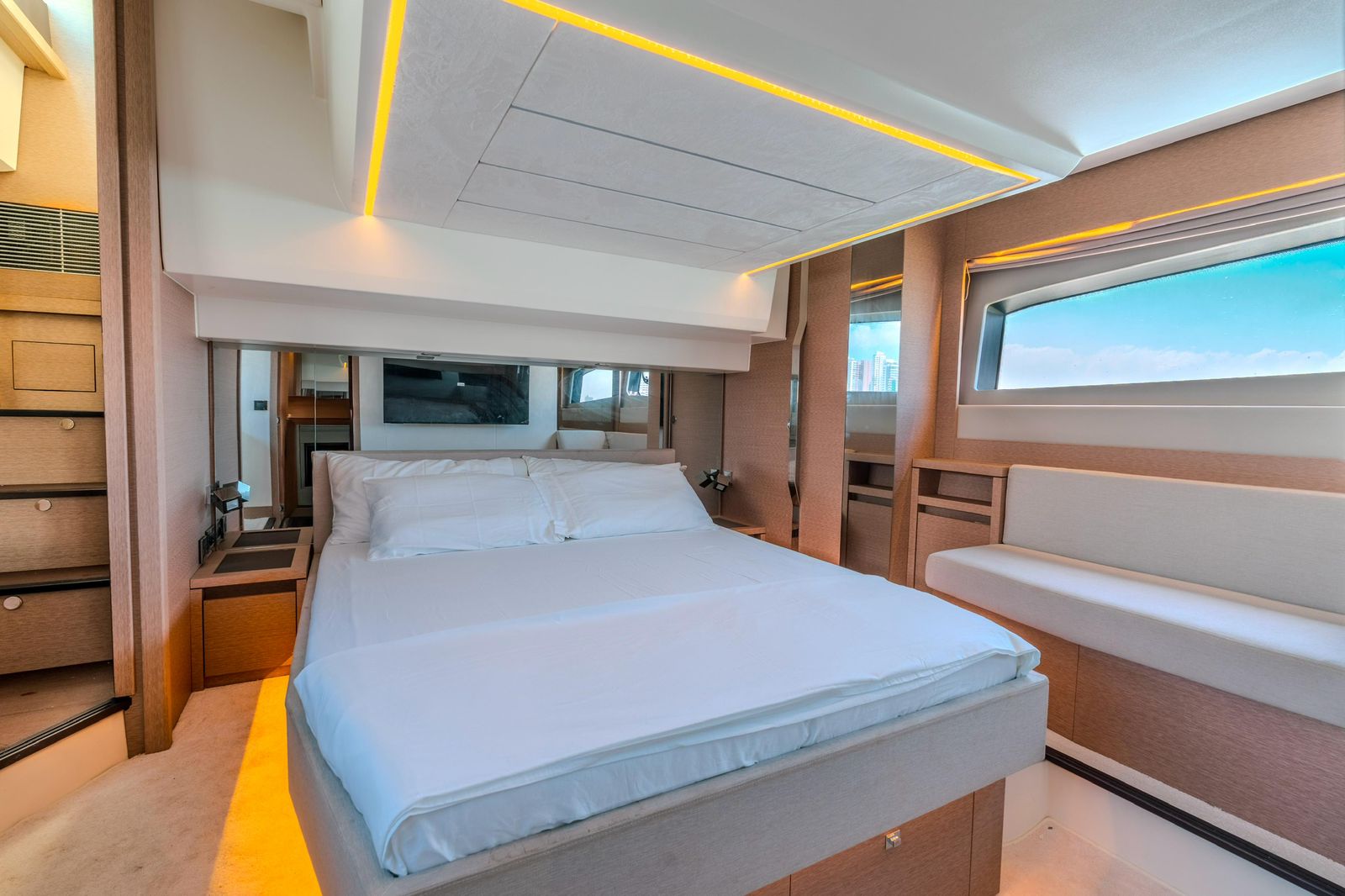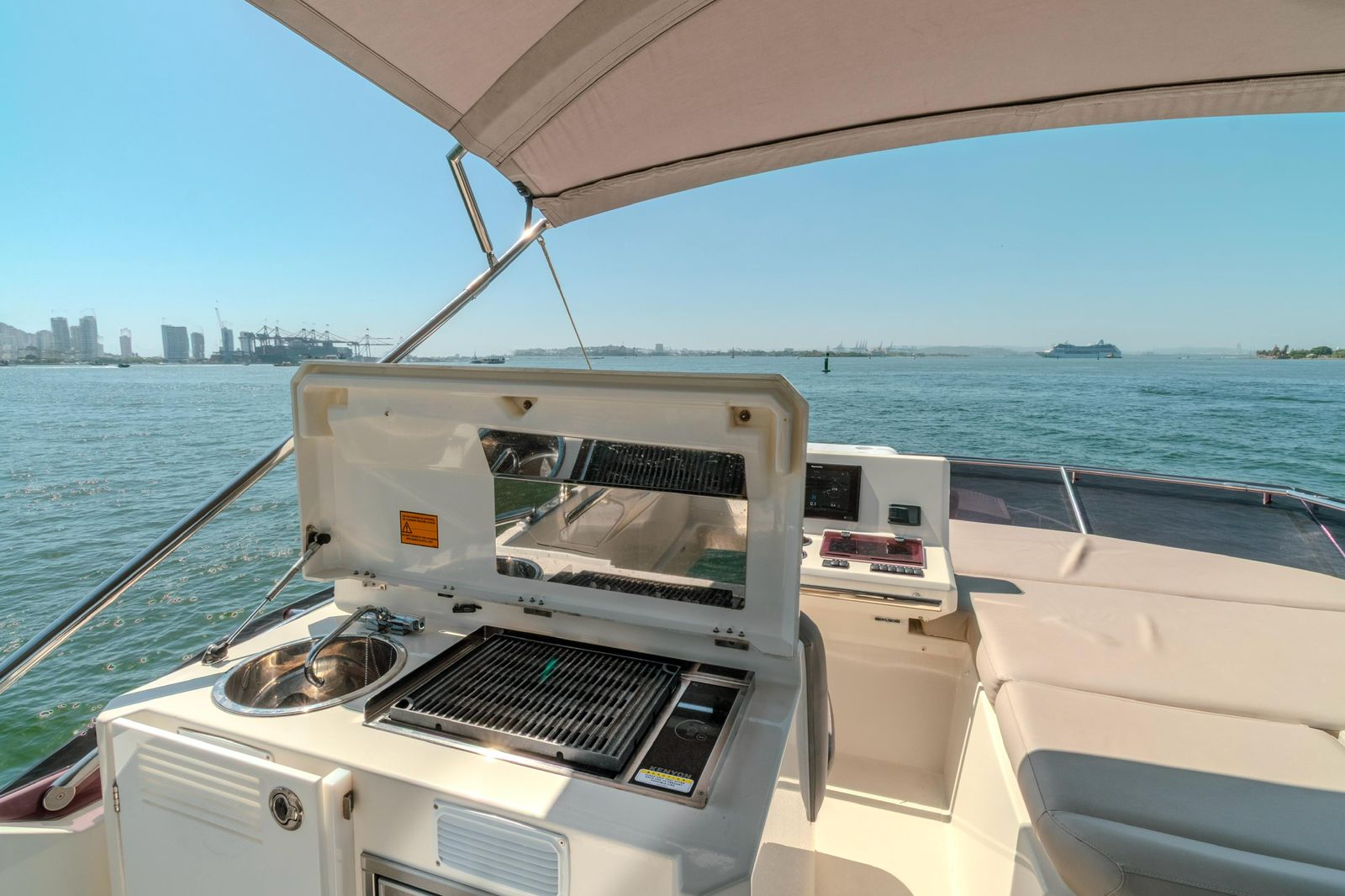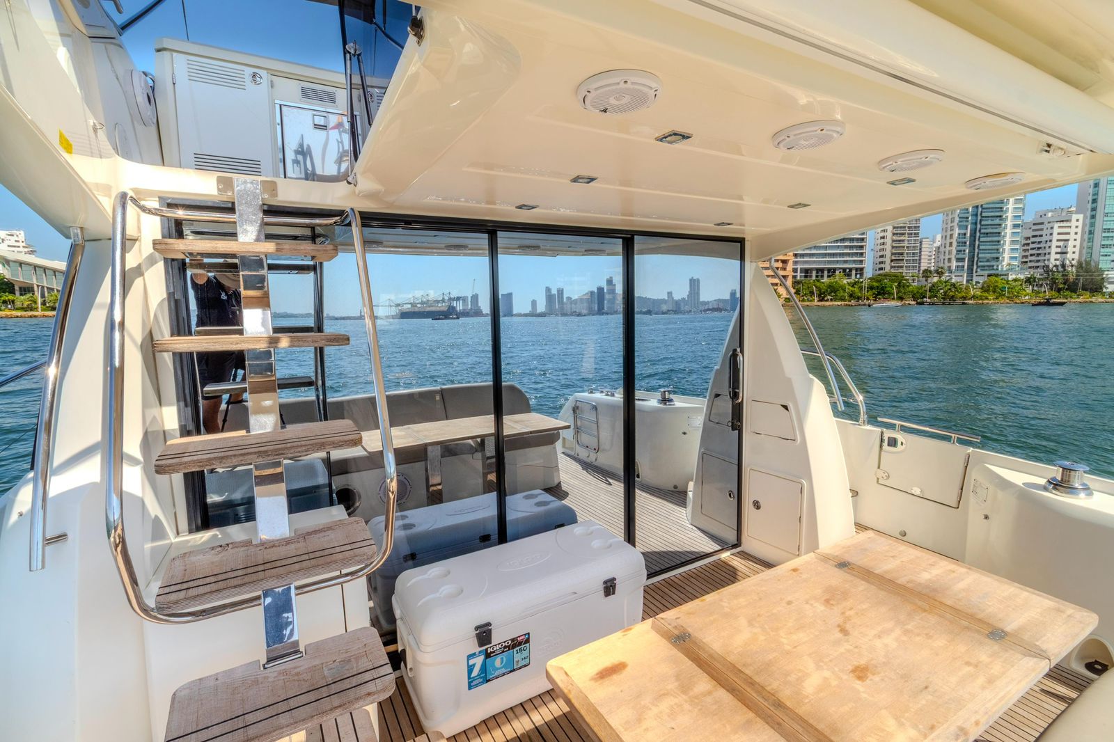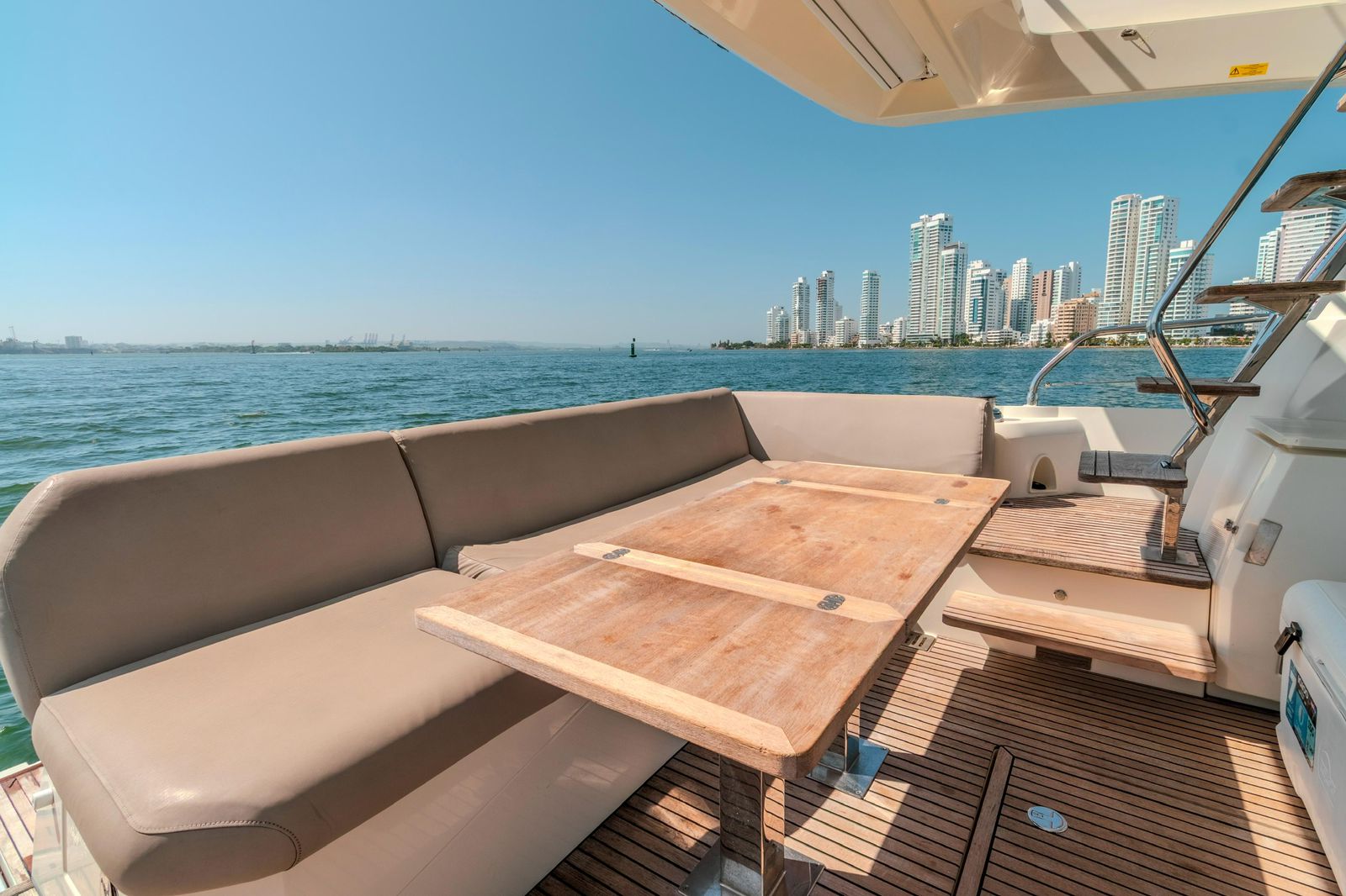 We set departure on a 520 Prestige F-Line Yacht Rental Cartagena for an unforgettable Island Tour. Step aboard, sip your welcome drink, and let our friendly crew create the perfect vibe. Then, as we cruise through the turquoise waters, get ready to explore Cartagena’s most beautiful islands— each with its own magic, hidden coves, and Caribbean charm.